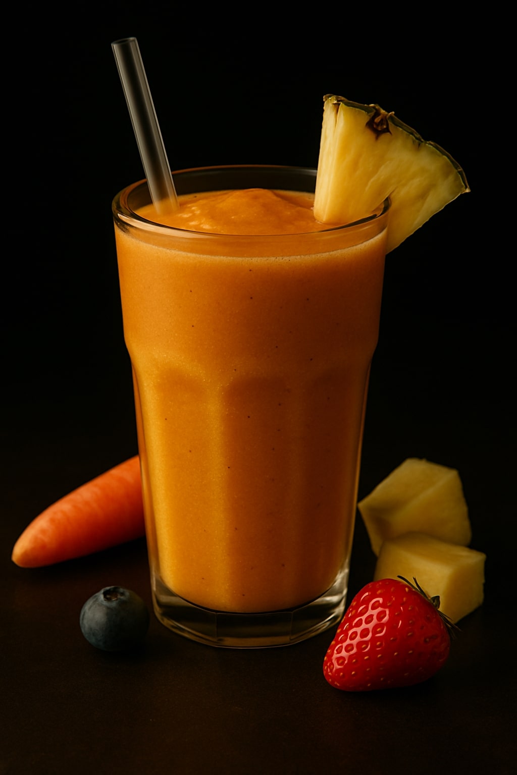 A tropical blend of carrot, mango, and pineapple for a refreshing, nutrient-rich smoothie.
