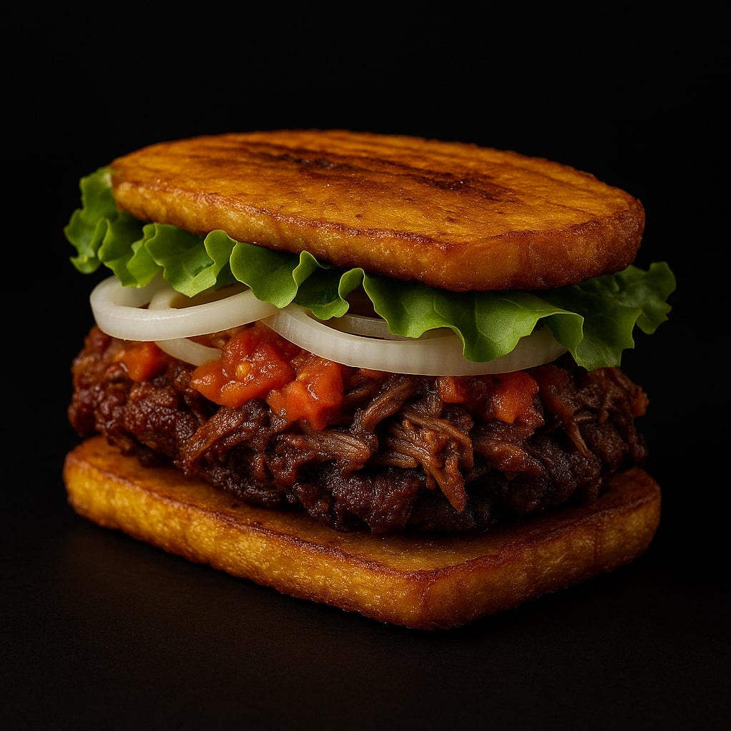 A Haitian-inspired sandwich with fried plantains (bunun) and bold flavors.