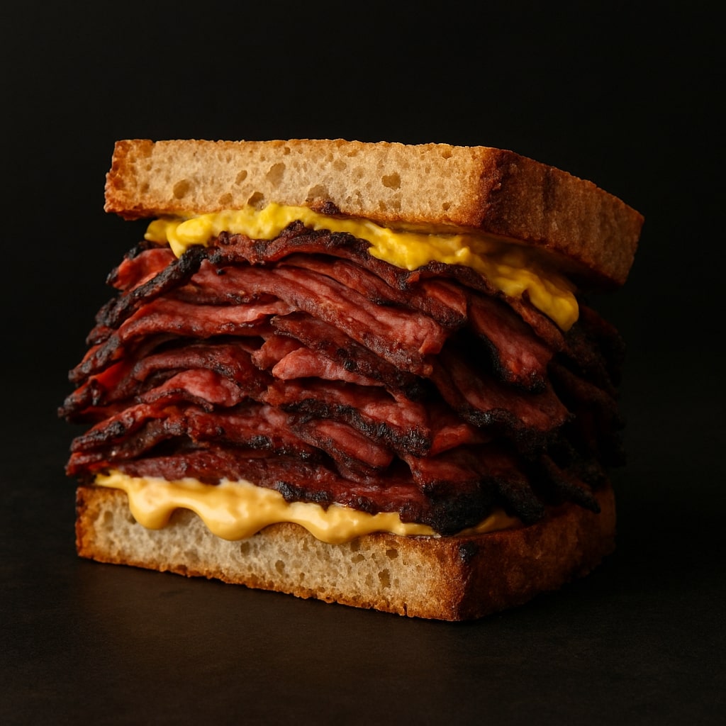 Hand-sliced bold and smoky pastrami piled high.