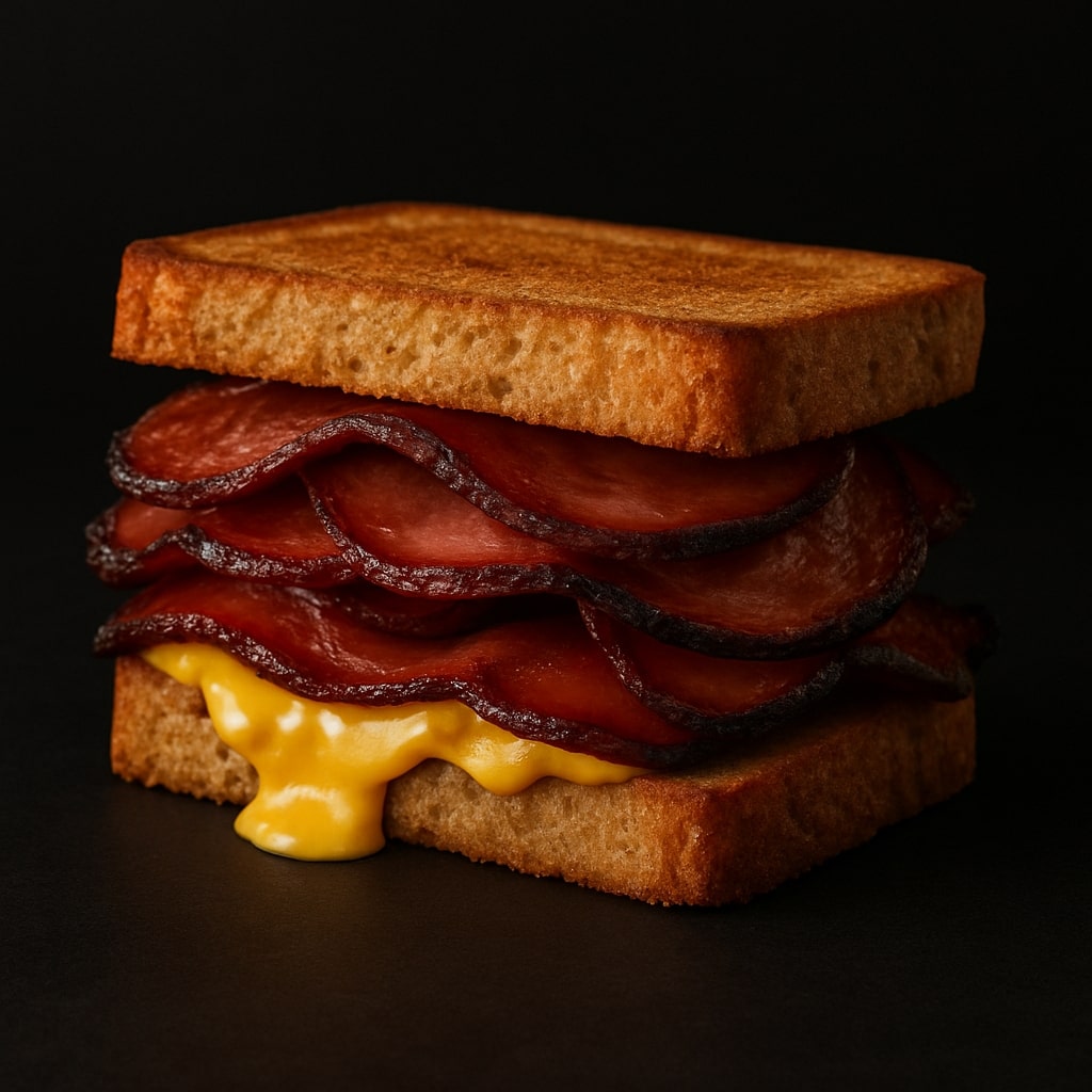 Fried beef bologna with crispy edges and melty cheese.